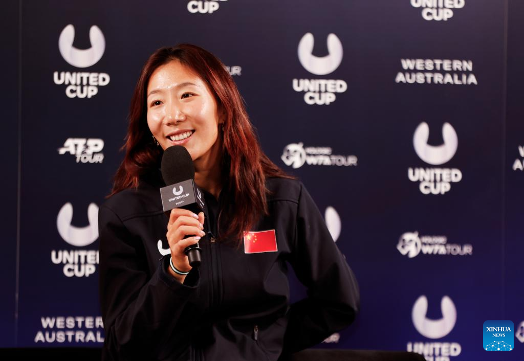 Zhang Shuai of China attends the media conference after the Group E round robin match between China and Germany at the 2025 United Cup tennis tournament in Perth, Australia, Dec. 31, 2024. (Xinhua/Ma Ping)