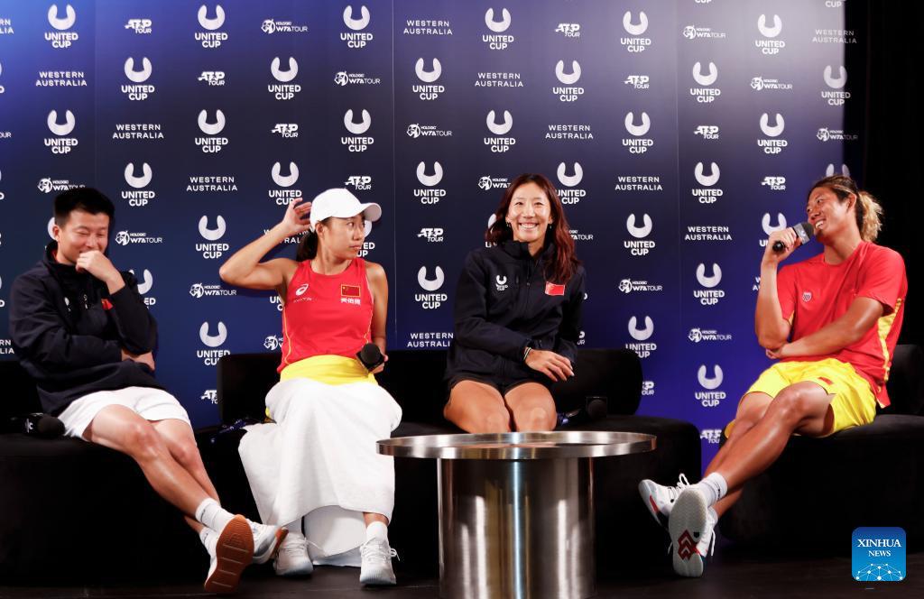 Team China attend the media conference after the Group E round robin match between China and Germany at the 2025 United Cup tennis tournament in Perth, Australia, Dec. 31, 2024. (Xinhua/Ma Ping)