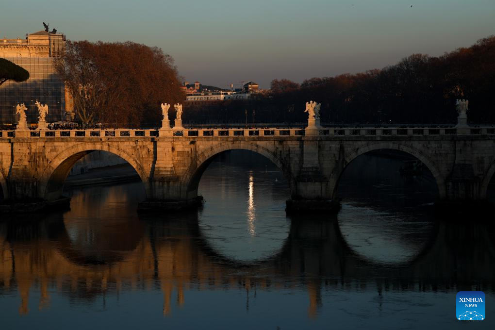 People visit the Ponte Sant'Angelo in Rome, Italy, Dec. 30, 2024. (Xinhua/Li Jing)