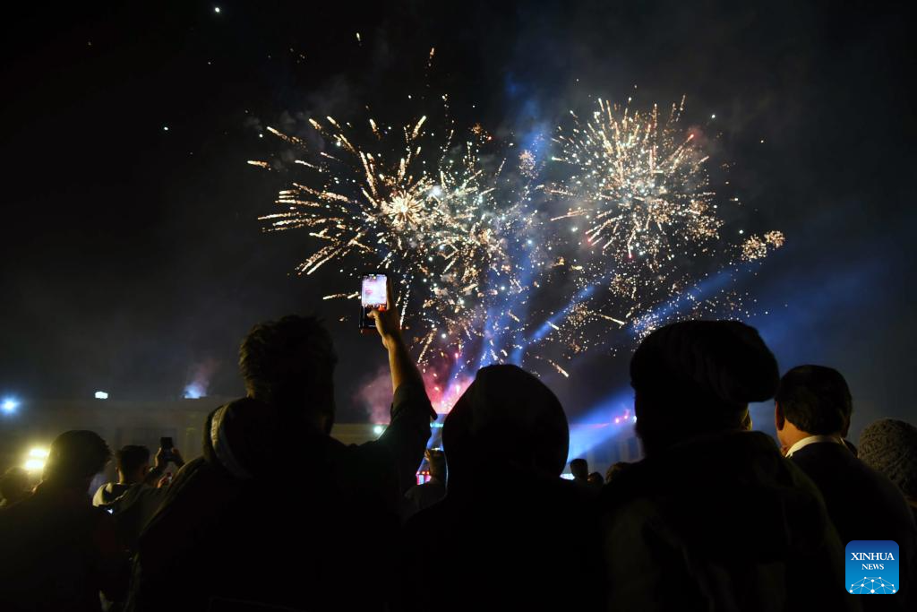 People watch fireworks in celebration of the New Year in Karachi, Pakistan, Jan. 1, 2025. (Str/Xinhua)