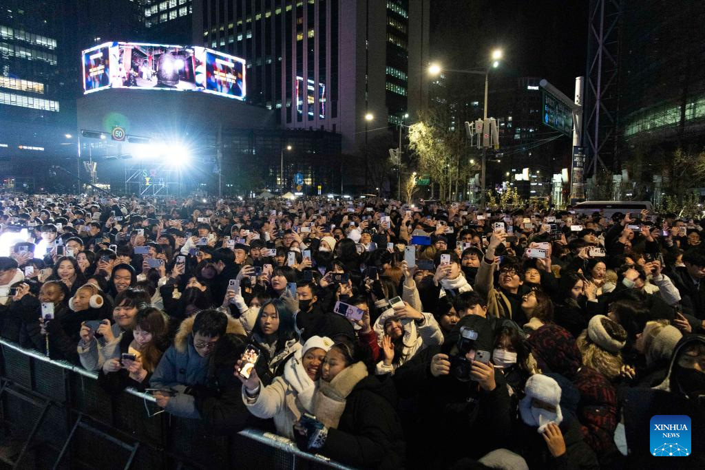South Korean people gather during a New Year countdown event in Seoul, South Korea, Jan. 1, 2025. (Xinhua/Jun Hyosang)