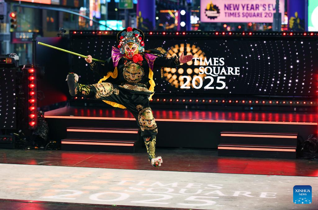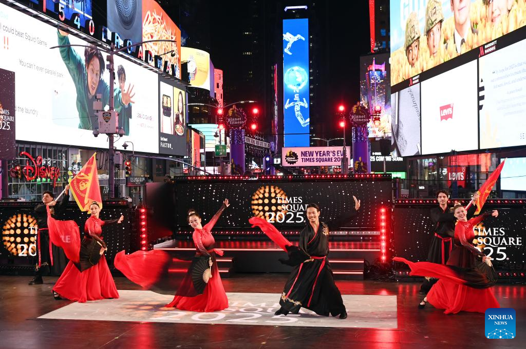 A performance is staged during a New Year celebration at Times Square in New York, the United States, Dec. 31, 2024. (Xinhua/Li Rui)