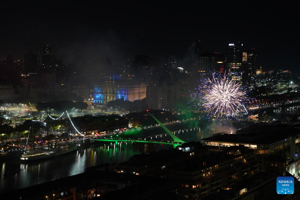 Fireworks explode in Buenos Aires, Argentina, Jan. 1, 2025. (Xinhua/Wang Zhongyi)