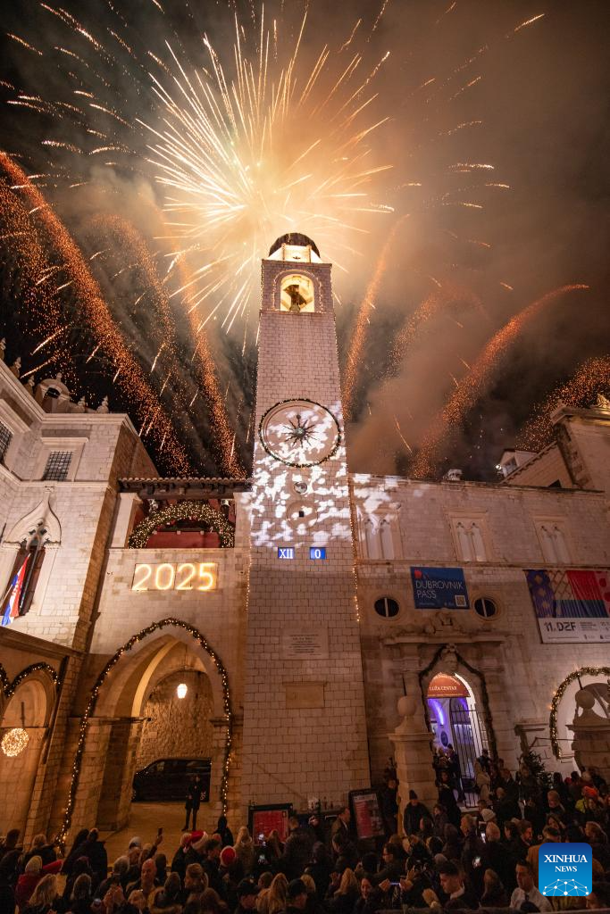 People participate in a New Year celebration in Dubrovnik, Croatia, Jan. 1, 2025. (Grgo Jelavic/PIXSELL via Xinhua)