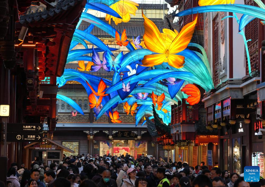 People visit the Yuyuan Garden Lantern Festival at Yuyuan Garden Mall in east China's Shanghai, Jan. 1, 2025. With the Chinese Lunar New Year just around the corner, Shanghai's Yuyuan Garden has again donned a festive look with hundreds of delicate, illuminated lanterns.