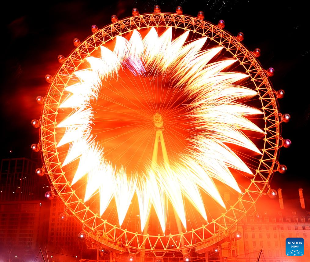 Fireworks explode in front of the London Eye in London, Britain, Jan. 1, 2025. (Xinhua/Li Ying)