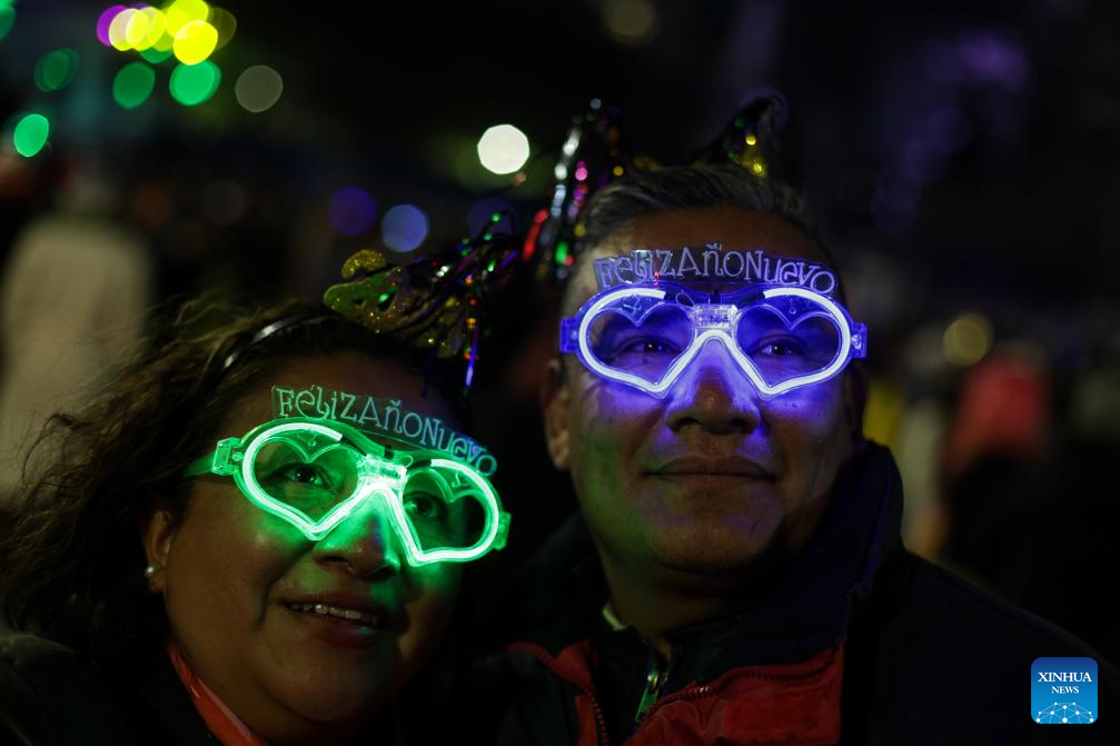 People celebrate the new year in Mexico City, Mexico, Jan. 1, 2025. (Xinhua/Francisco Canedo)