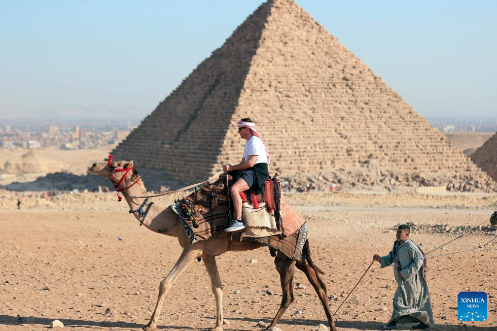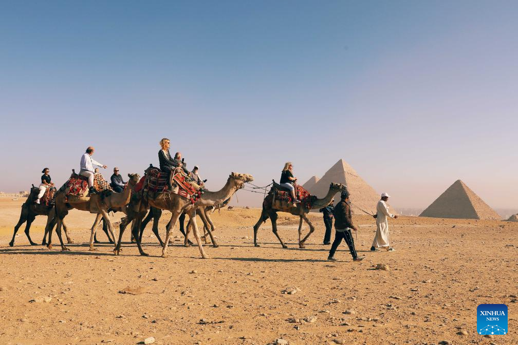 Tourists visit the Giza Pyramids scenic spot in Giza, Egypt, on Jan. 2, 2025. Egyptian Prime Minister Mostafa Madbouly said Wednesday that the country received a record high of 15.7 million tourists in 2024, according to a statement issued by the Egyptian cabinet. (Xinhua/Ahmed Gomaa)