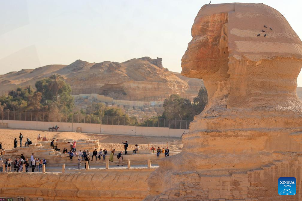 Tourists visit the Sphinx at the Giza Pyramids scenic spot in Giza, Egypt, on Jan. 2, 2025. Egyptian Prime Minister Mostafa Madbouly said Wednesday that the country received a record high of 15.7 million tourists in 2024, according to a statement issued by the Egyptian cabinet. (Xinhua/Ahmed Gomaa)