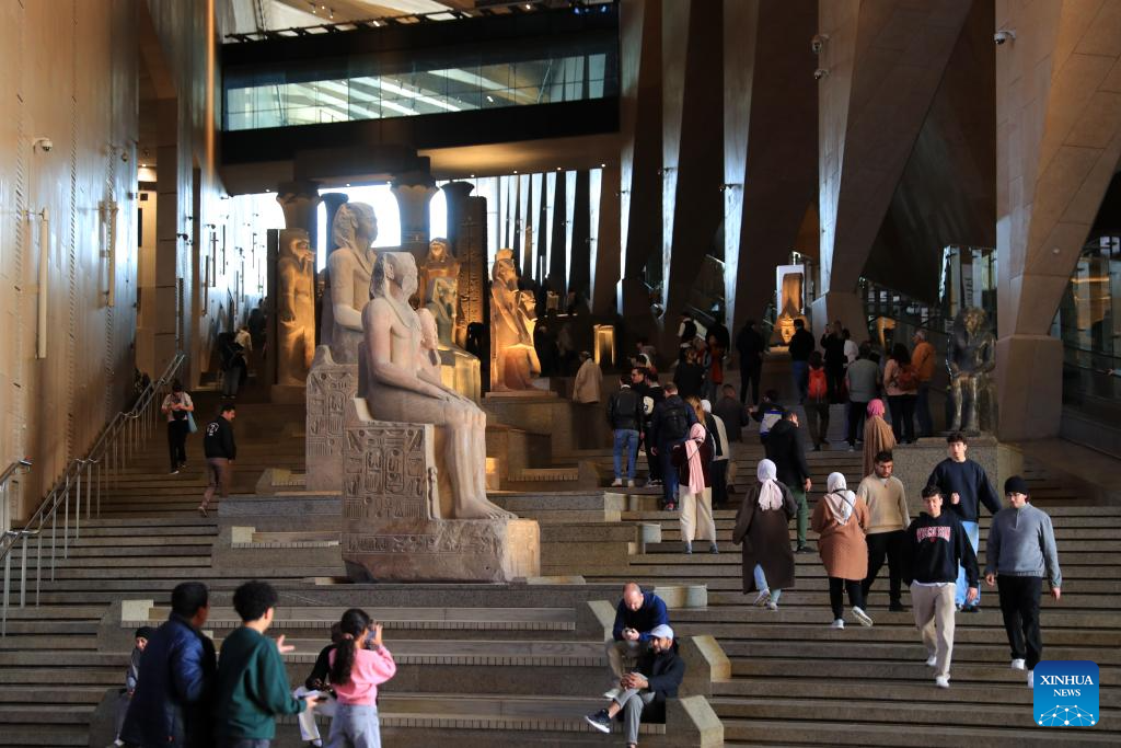 Tourists visit the Grand Egyptian Museum in Giza, Egypt, on Jan. 2, 2025. Egyptian Prime Minister Mostafa Madbouly said Wednesday that the country received a record high of 15.7 million tourists in 2024, according to a statement issued by the Egyptian cabinet. (Xinhua/Sui Xiankai)