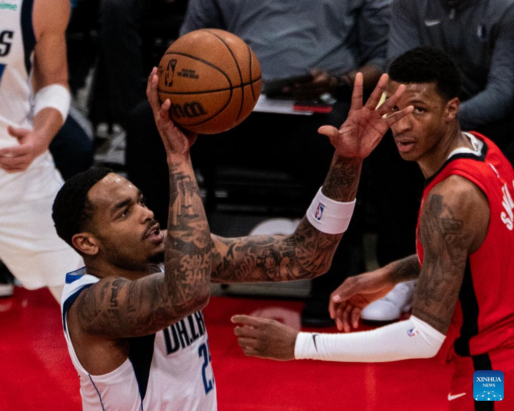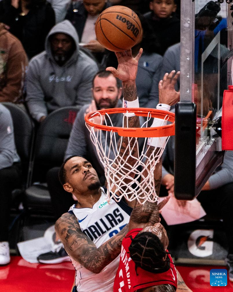 P.J. Washington (L) of Dallas Mavericks shoots during the 2024-2025 NBA regular season match between Houston Rockets and Dallas Mavericks in Houston, Texas, the United States, Jan. 1, 2025. (Photo by Chen Chen/Xinhua)