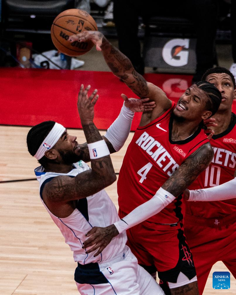 P.J. Washington (L) of Dallas Mavericks competes during the 2024-2025 NBA regular season match between Houston Rockets and Dallas Mavericks in Houston, Texas, the United States, Jan. 1, 2025. (Photo by Chen Chen/Xinhua)