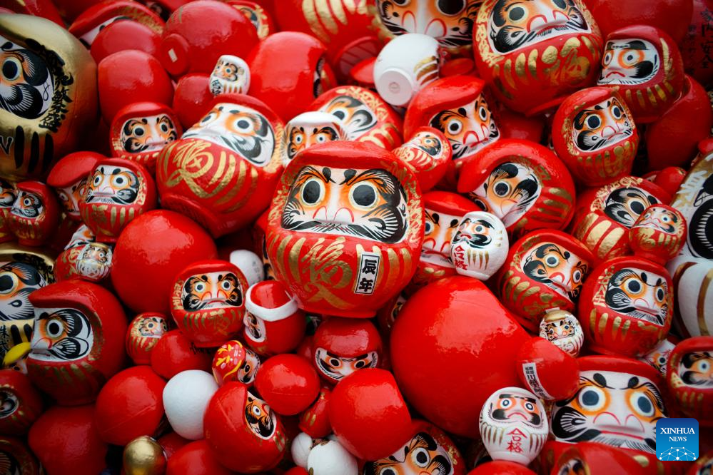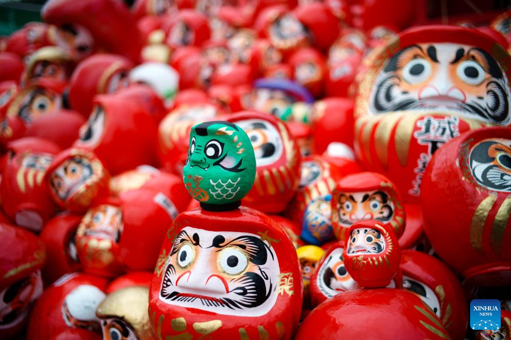 Daruma dolls are pictured at a Daruma Market in Saitama, Japan, Jan. 3, 2025. Daruma Market is a traditional Japanese event centered around the sale of Daruma dolls, which are widely regarded as symbols of good fortune, perseverance, and success. Such kind of markets are typically held at the beginning of the year. (Xinhua/Zhang Xiaoyu)