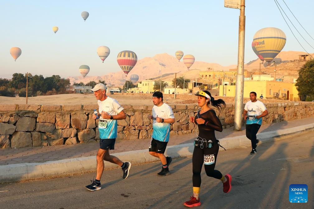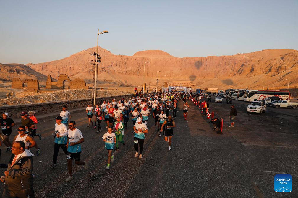Contestants run during the Egyptian Marathon in Luxor, Egypt, Jan. 10, 2025. (Xinhua/Ahmed Gomaa)
