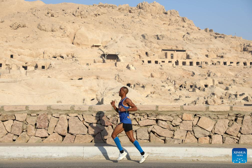 A contestant runs during the Egyptian Marathon in Luxor, Egypt, Jan. 10, 2025. (Xinhua/Ahmed Gomaa)