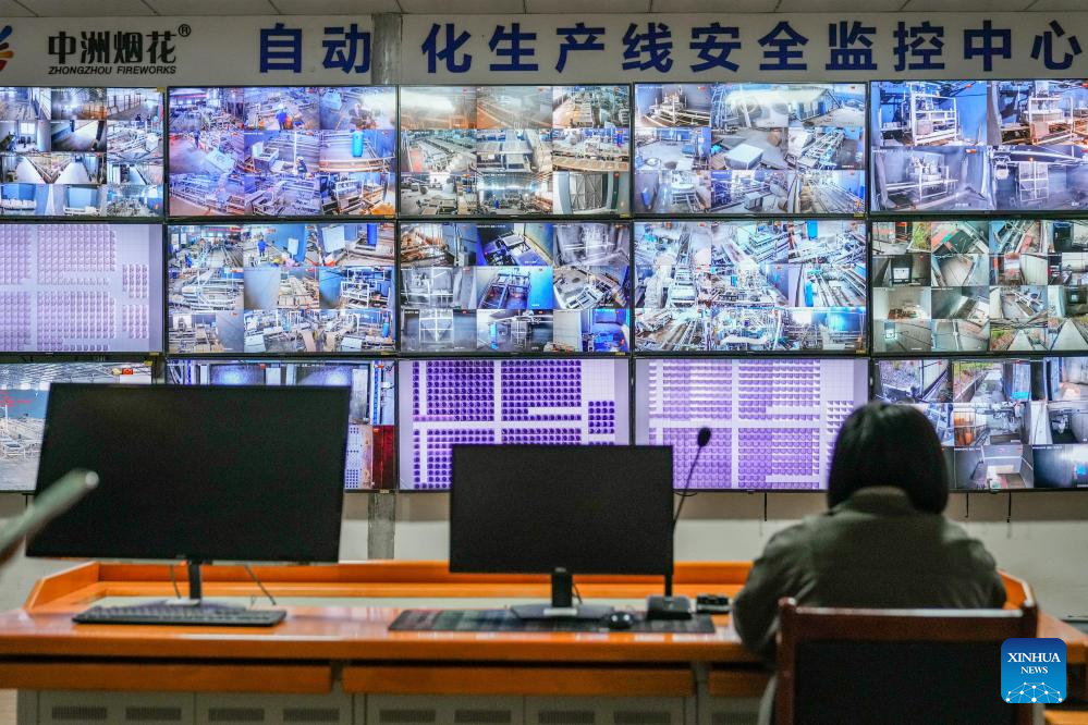 This photo taken on Jan. 7, 2025 shows a monitor room to ensure production safety at a firework company in Liuyang City, central China's Hunan Province. Liuyang, a county-level city in Changsha, capital of central China's Hunan Province, is deemed the world's fireworks hub. (Xinhua/Chen Zeguo)