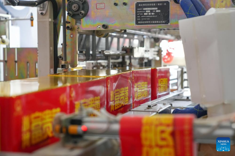 This photo taken on Jan. 7, 2025 shows a production line at a workshop of a local firework company in Liuyang City, central China's Hunan Province. Liuyang, a county-level city in Changsha, capital of central China's Hunan Province, is deemed the world's fireworks hub. (Xinhua/Chen Zeguo)