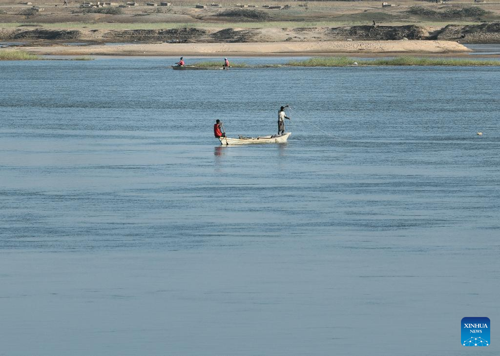 Fishermen catch fish in the Chari River in N'Djamena, Chad, on Jan. 7, 2025. (Xinhua/Han Xu)