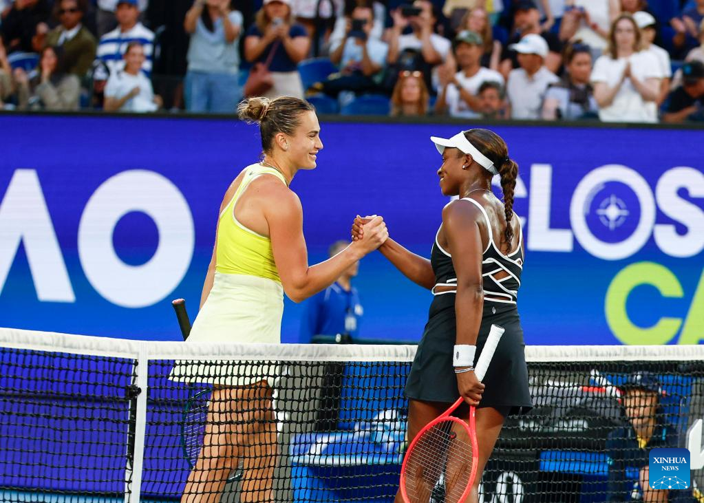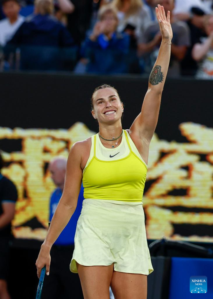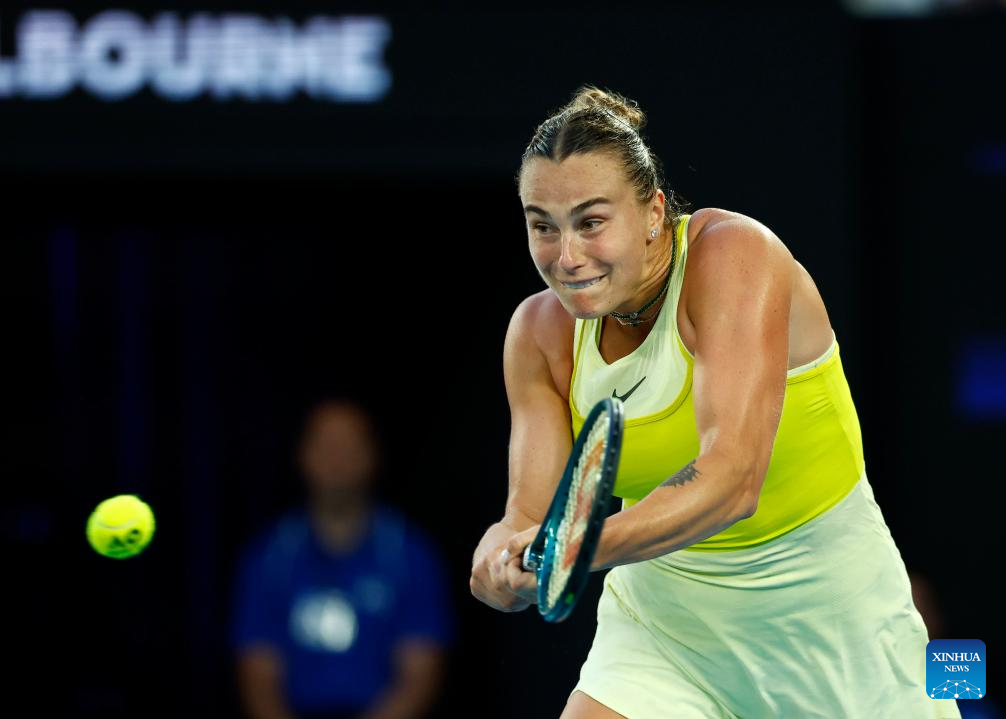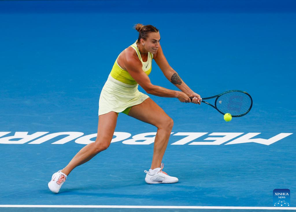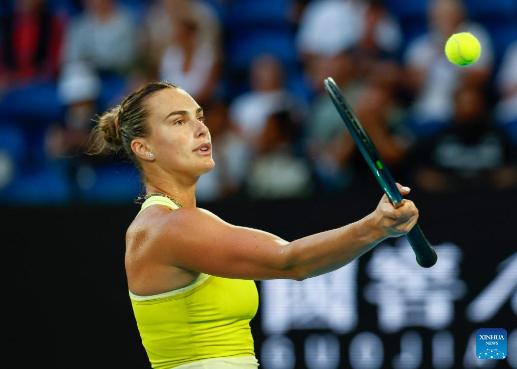 MELBOURNE, Jan. 12 (Xinhua) -- Aryna Sabalenka began her campaign for a third consecutive Australian Open title with a straight sets victory on center court on Sunday night.
