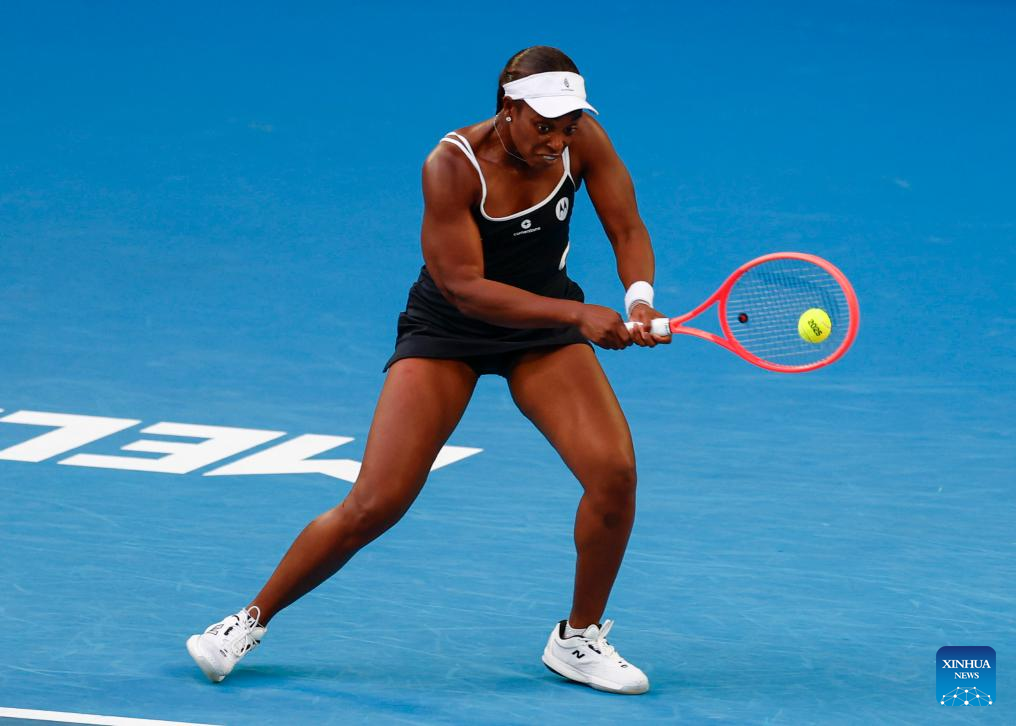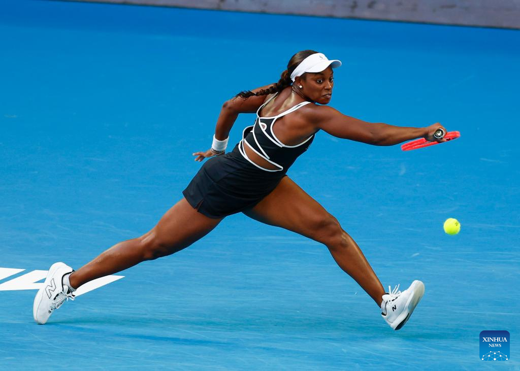 Sloane Stephens hits a return during the women's singles first round match between Aryna Sabalenka of Belarus and Sloane Stephens of the United States at Australian Open tennis tournament in Melbourne, Australia, Jan. 12, 2025. (Photo by Chu Chen/Xinhua)