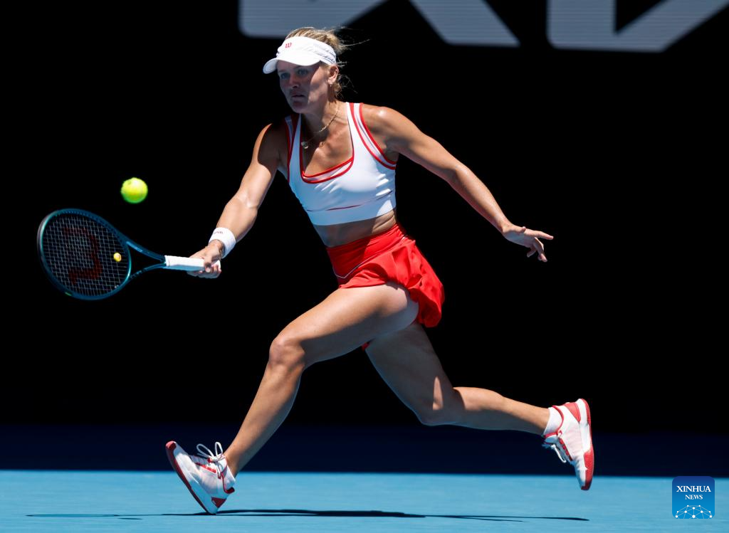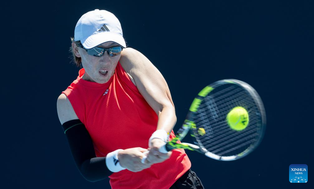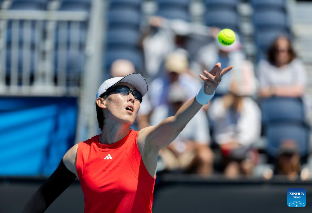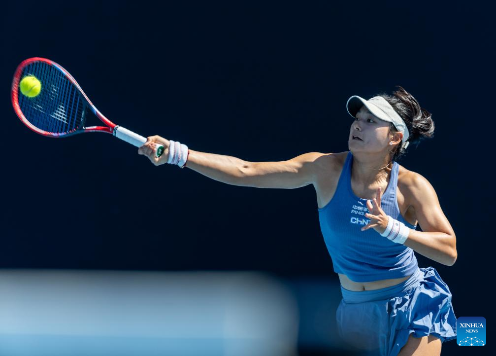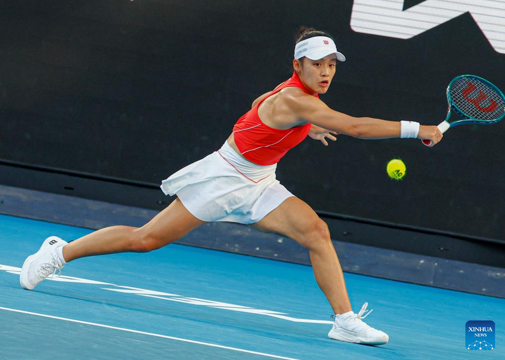 Zhang Shuai hits a return during the women's singles first round match between Zhang Shuai of China and McCartney Kessler of the United States at Australian Open tennis tournament in Melbourne, Australia, Jan. 14, 2025. (Xinhua/Ma Ping)