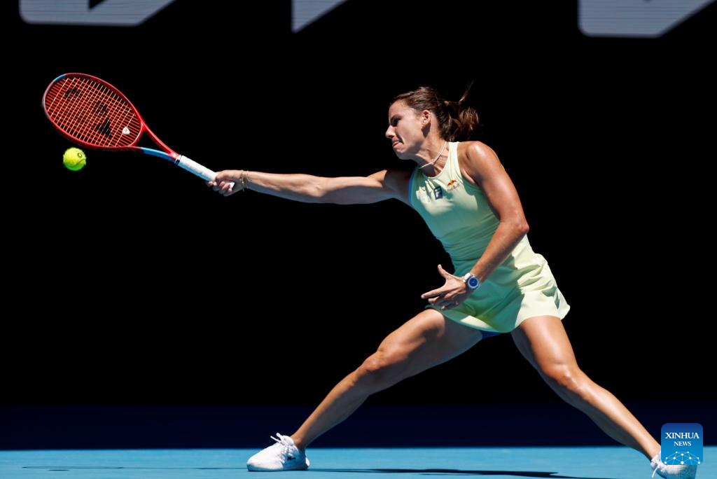 Jasmine Paolini hits a return during the women's singles first round match between Wei Sijia of China and Jasmine Paolini of Italy at Australian Open tennis tournament in Melbourne, Australia, Jan. 14, 2025. (Photo by Chu Chen/Xinhua)