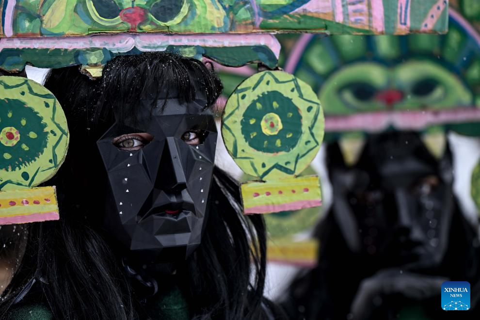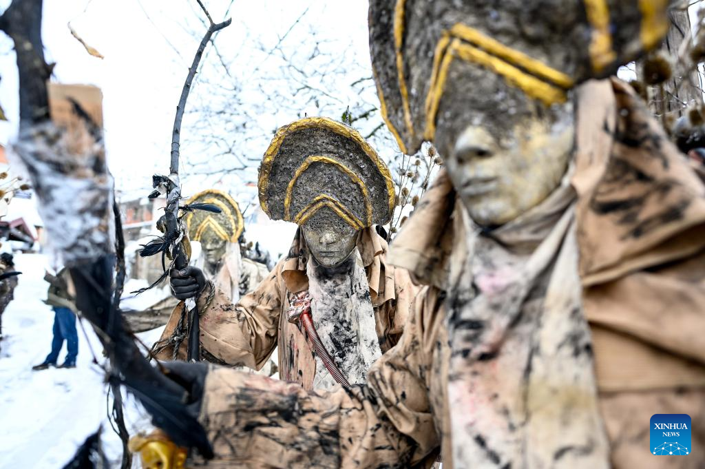 Revelers participate in a carnival celebration in the village of Vevcani, North Macedonia, Jan. 13, 2025. (Photo by Tomislav Georgiev/Xinhua)