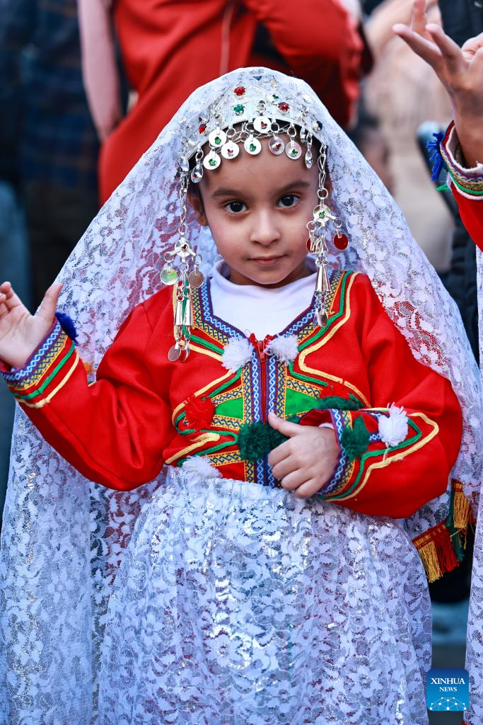 A girl in national costumes attends the celebration of the Amazigh New Year in Rabat, Morocco, Jan. 14, 2025. (Xinhua/Huo Jing)