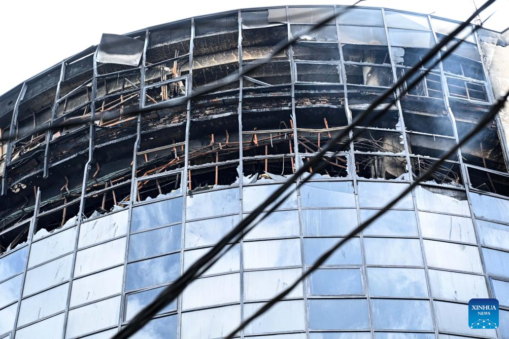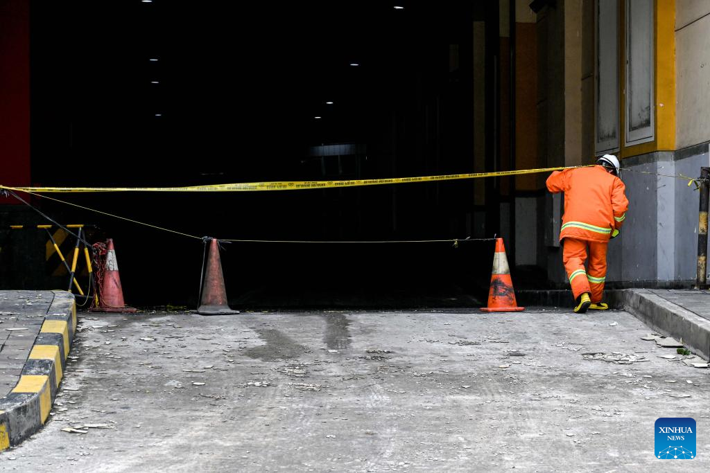 Smoke rises from a damaged building after a fire in Jakarta, Indonesia, Jan. 18, 2025. Five bodies were evacuated on Friday from a fire that broke out at a shopping mall in the western part of Jakarta on Wednesday evening, as rescuers intensified search efforts for other missing persons. (Xinhua/Agung Kuncahya B.)