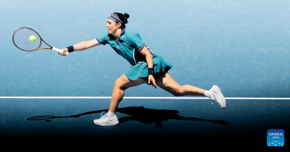 Emma Navarro hits a return during the women's singles 3rd round match between Emma Navarro of the United States and Ons Jabeur of Tunisia at Australian Open tennis tournament in Melbourne, Australia, Jan. 18, 2025. (Photo by Hu Jingchen/Xinhua)
