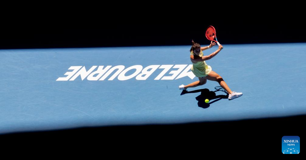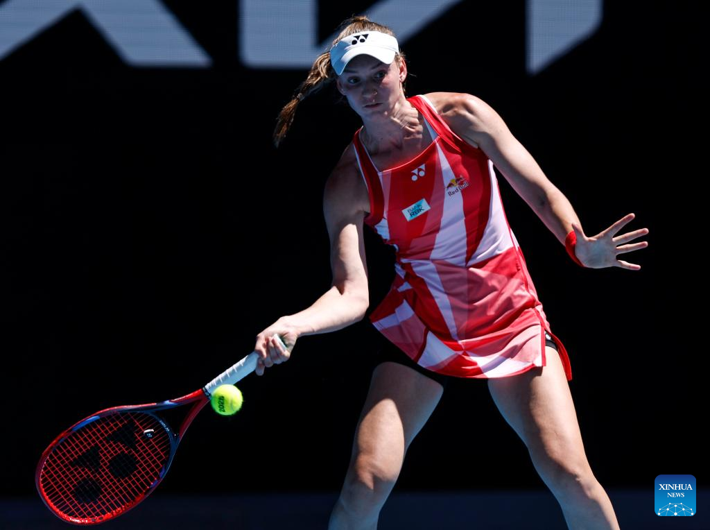 Elena Rybakina hits a return during the women's singles 3rd round match between Elena Rybakina of Kazakhstan and Dayana Yastremska of Ukraine at Australian Open tennis tournament in Melbourne, Australia, Jan. 18, 2025. (Xinhua/Ma Ping)