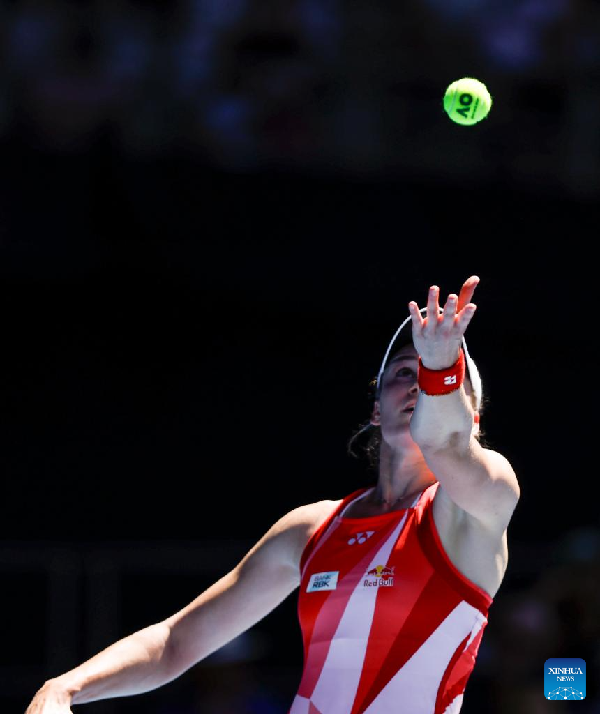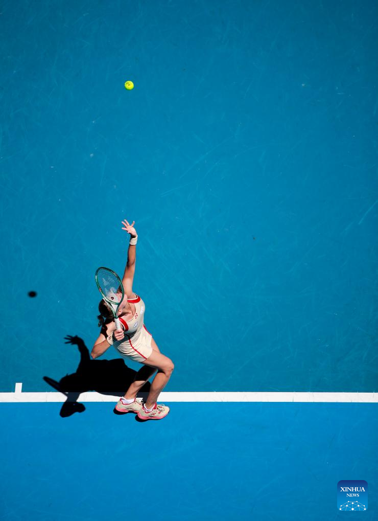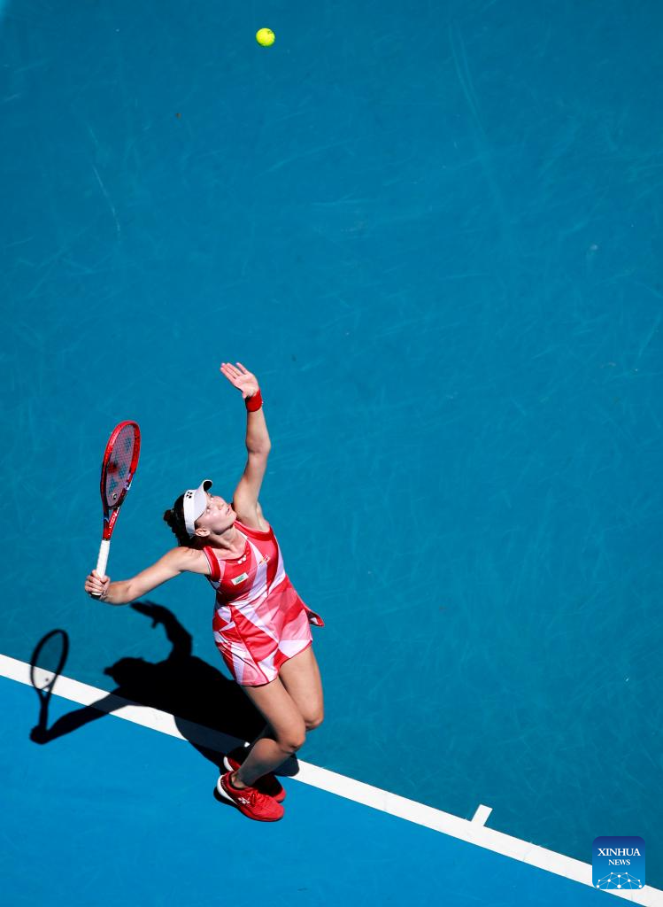 Dayana Yastremska serves during the women's singles 3rd round match between Elena Rybakina of Kazakhstan and Dayana Yastremska of Ukraine at Australian Open tennis tournament in Melbourne, Australia, Jan. 18, 2025. (Xinhua/Ma Ping)