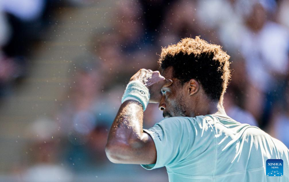 Gael Monfils reacts during the men's singles 3rd round match between Taylor Fritz of the United States and Gael Monfils of France at Australian Open tennis tournament in Melbourne, Australia, Jan. 18, 2025. (Photo by Hu Jingchen/Xinhua)