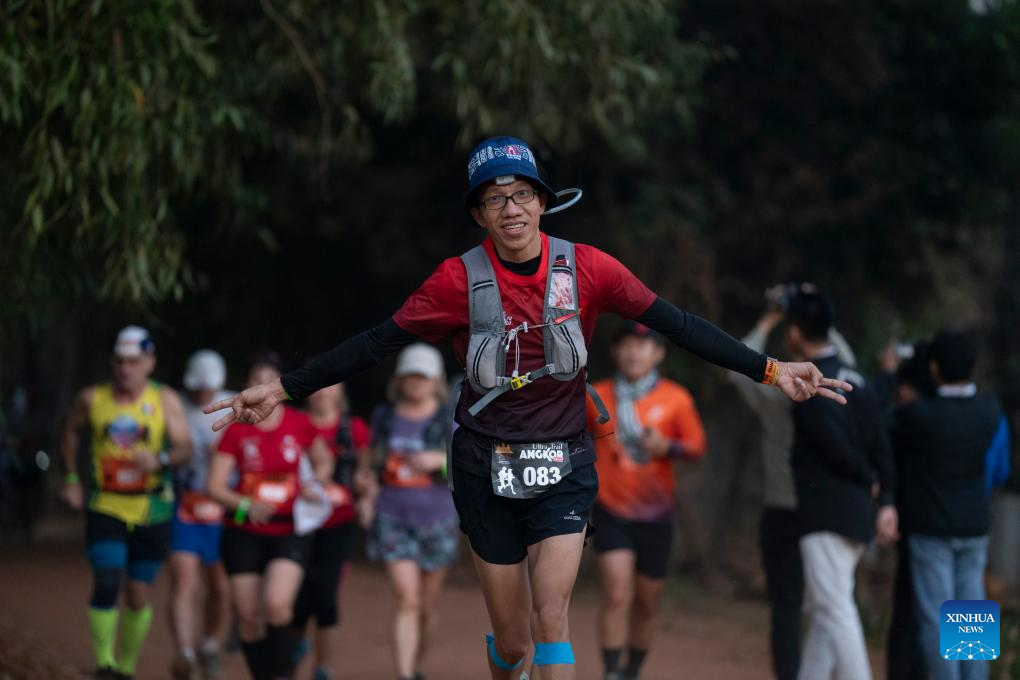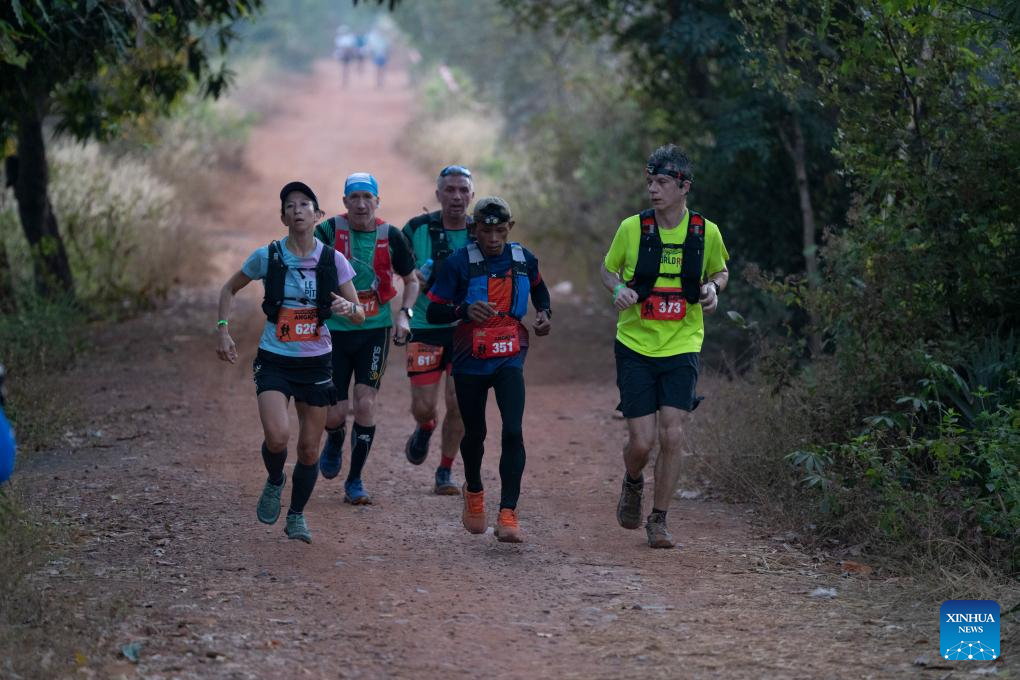 Runners take part in the eighth Angkor Ultra Trail 100-km challenge at the UNESCO-listed Angkor Archaeological Park in Siem Reap province, Cambodia on Jan. 18, 2025. (Photo by Sao Khuth/Xinhua)