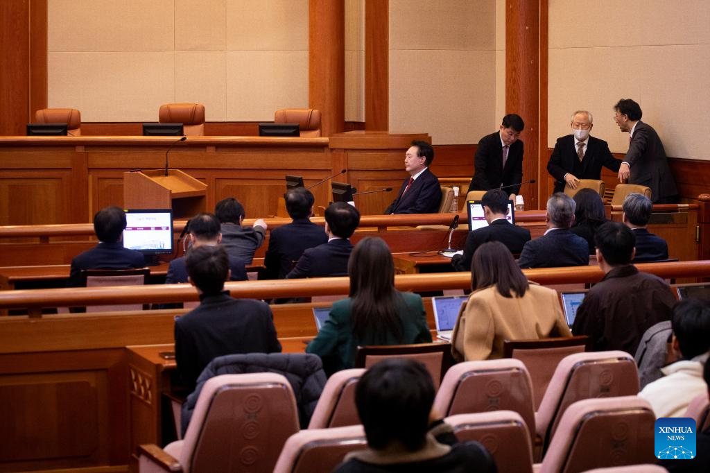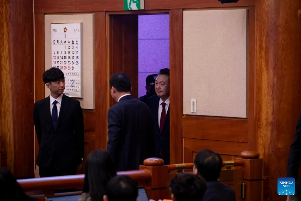 South Korea's arrested President Yoon Suk-yeol attends the third formal hearing of his impeachment trial at the constitutional court in Seoul, South Korea, Jan. 21, 2025. (Woohae Cho/Pool via Xinhua)