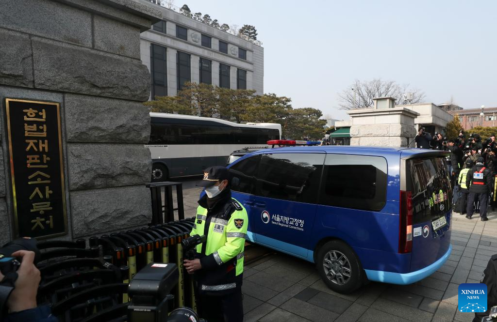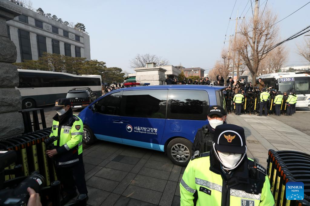 A vehicle carrying South Korea's arrested President Yoon Suk-yeol arrives at the constitutional court in Seoul, South Korea, Jan. 21, 2025. (Xinhua/Yao Qilin)