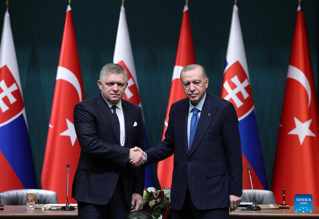 ANKARA, Jan. 20 (Xinhua) -- Türkiye and Slovakia on Monday signed a joint declaration to elevate the bilateral relations to the level of strategic partnership, Turkish President Recep Tayyip Erdogan said.
