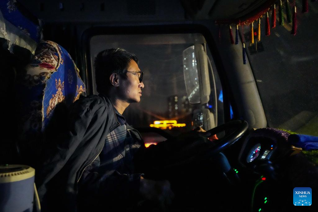 By the end of December 2024, there were approximately 38 million truck drivers in China. These drivers work tirelessly on the front lines of transportation services, not only striving to make a living for themselves but also ensuring the livelihood of countless families. (Xinhua/Cai Yang)