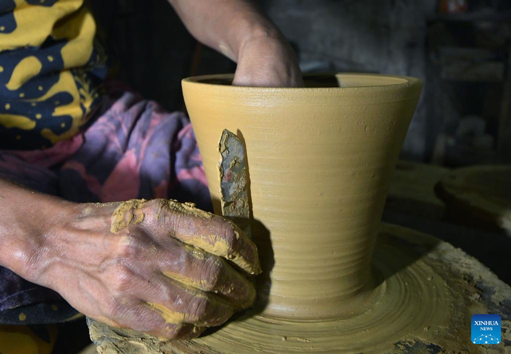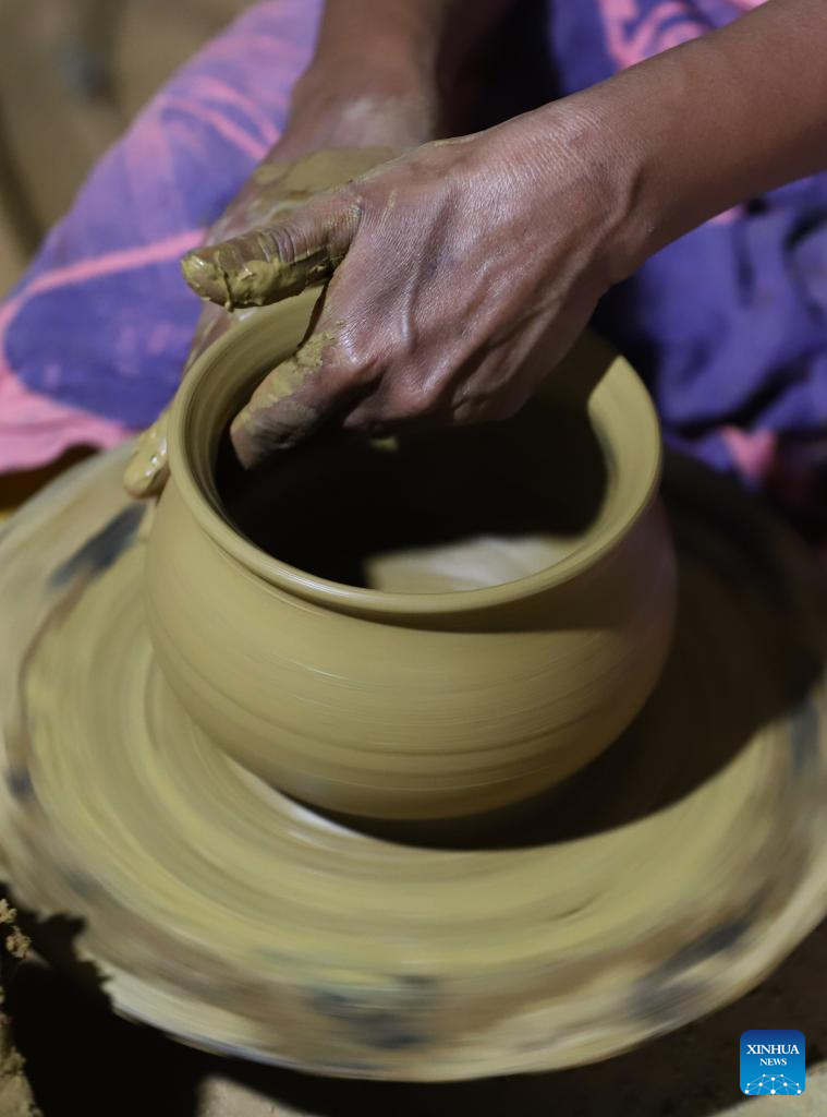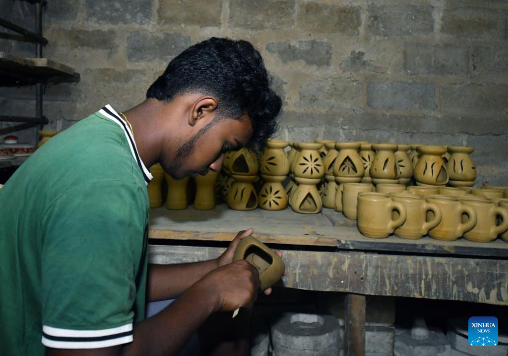 A worker works on a piece of pottery at a pottery factory in Biyagama, Sri Lanka, Jan. 22, 2025. (Photo by Ajith Perera/Xinhua)