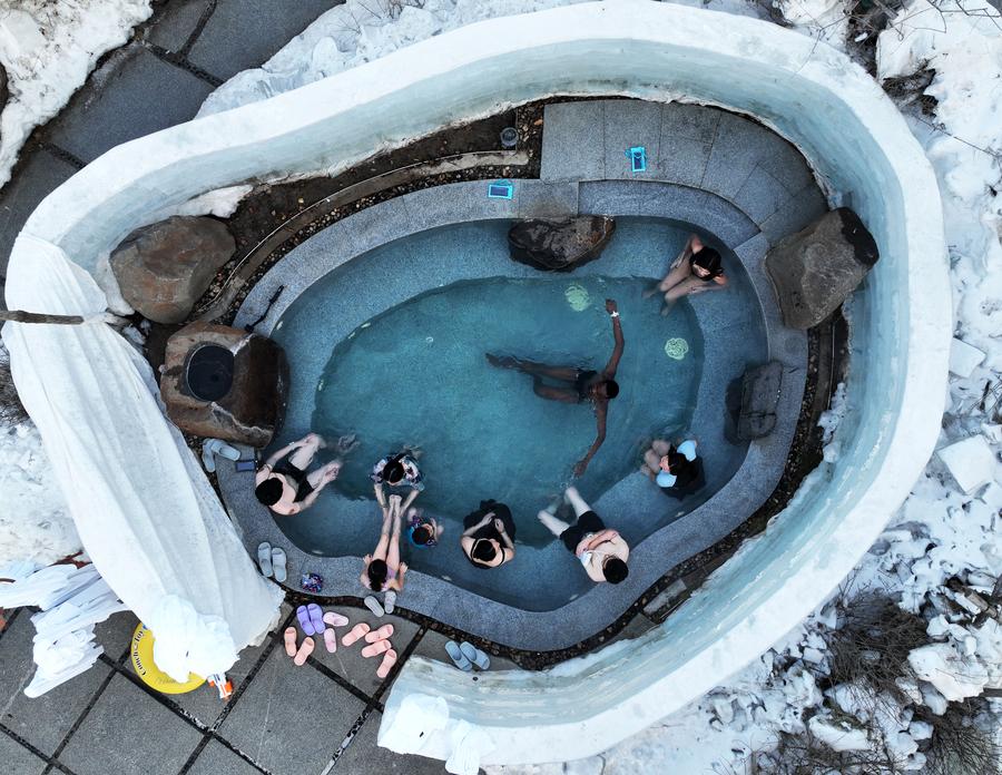 An aerial drone photo shows visitors enjoying themselves in a hot spring pool surrounded by ice and snow at a hot spring resort in Shenyang, northeast China's Liaoning Province, Jan. 17, 2025. (Xinhua/Li Gang)Visitors pose for photos with flowers encased in an ice wall at a hot spring resort in Shenyang, northeast China's Liaoning Province, Jan. 17, 2025. (Xinhua/Li Gang)Visitors enjoy themselves in a hot spring pool surrounded by ice and snow at a hot spring resort in Shenyang, northeast China's Liaoning Province, Jan. 17, 2025. (Xinhua/Yang Qing)May Thet Hnynn (R) and Kameni (L) pose for a photo at a hot spring resort in Shenyang, northeast China's Liaoning Province, Jan. 17, 2025. (Xinhua/Yang Qing)May Thet Hnynn (L) and Kameni (R) relax at a hot spring resort in Shenyang, northeast China's Liaoning Province, Jan. 17, 2025. (Xinhua/Yang Qing)May Thet Hnynn (R) and Kameni (L) relax at a hot spring resort in Shenyang, northeast China's Liaoning Province, Jan. 17, 2025. (Xinhua/Yang Qing)An aerial drone photo shows visitors enjoying themselves in a hot spring pool surrounded by ice and snow at a hot spring resort in Shenyang, northeast China's Liaoning Province, Jan. 17, 2025. (Xinhua/Li Gang)An aerial drone photo shows visitors enjoying themselves in hot spring pools surrounded by ice and snow at a hot spring resort in Shenyang, northeast China's Liaoning Province, Jan. 17, 2025. (Xinhua/Li Gang)■