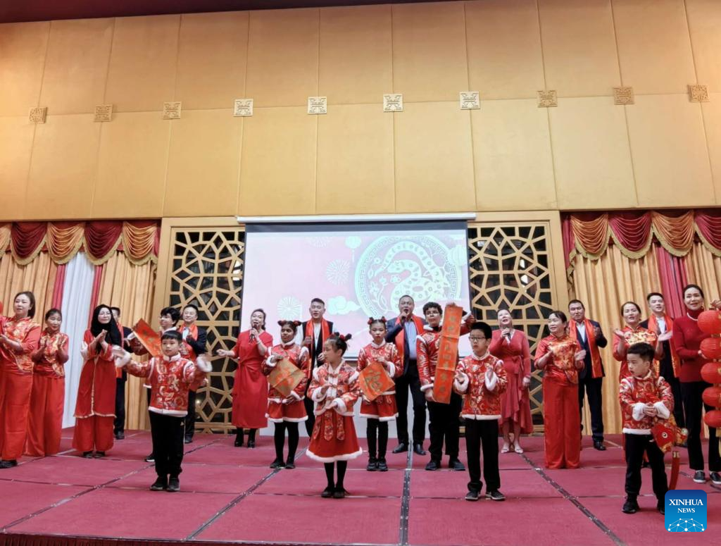 People perform during an event to mark the upcoming Chinese Lunar New Year in Hawalli Governorate, Kuwait, Jan. 23, 2025. The event was hosted by the Chinese embassy in Kuwait on Thursday evening. (Photo by Hu Tiancan/Xinhua)