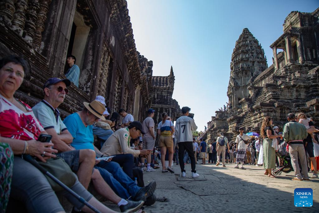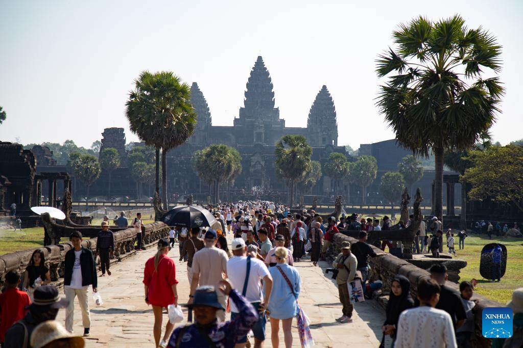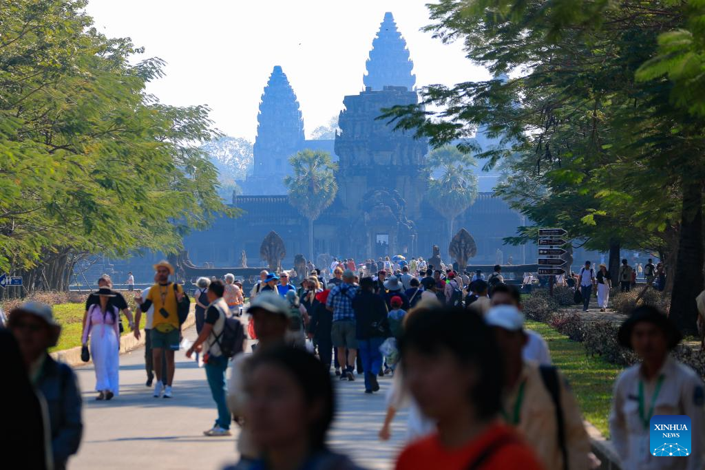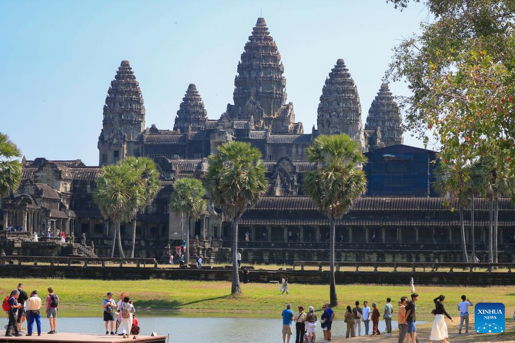 Tourists visit the Angkor Wat Temple at the UNESCO-listed Angkor Archaeological Park in Siem Reap province, Cambodia, Jan. 29, 2025. (Photo by Sao Khuth/Xinhua)
