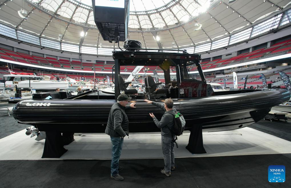 People visit the 2025 Vancouver International Boat Show at BC Place in Vancouver, British Columbia, Canada, Jan. 30, 2025. The Vancouver International Boat Show, western Canada's largest sale for boats, accessories and more, kicked off on Wednesday. (Photo by Liang Sen/Xinhua)