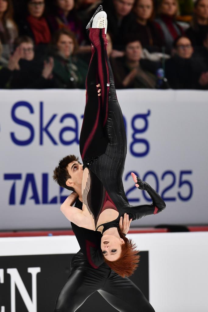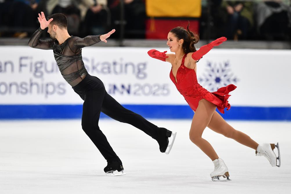 Evgeniia Lopareva (R)/Geoffrey Brissaud of France compete during the Ice Dance Free Dance Competition at ISU European Figure Skating Championships 2025 Tallinn in Tallinn, Estonia on Feb. 1, 2025. (Photo by Sergei Stepanov/Xinhua)