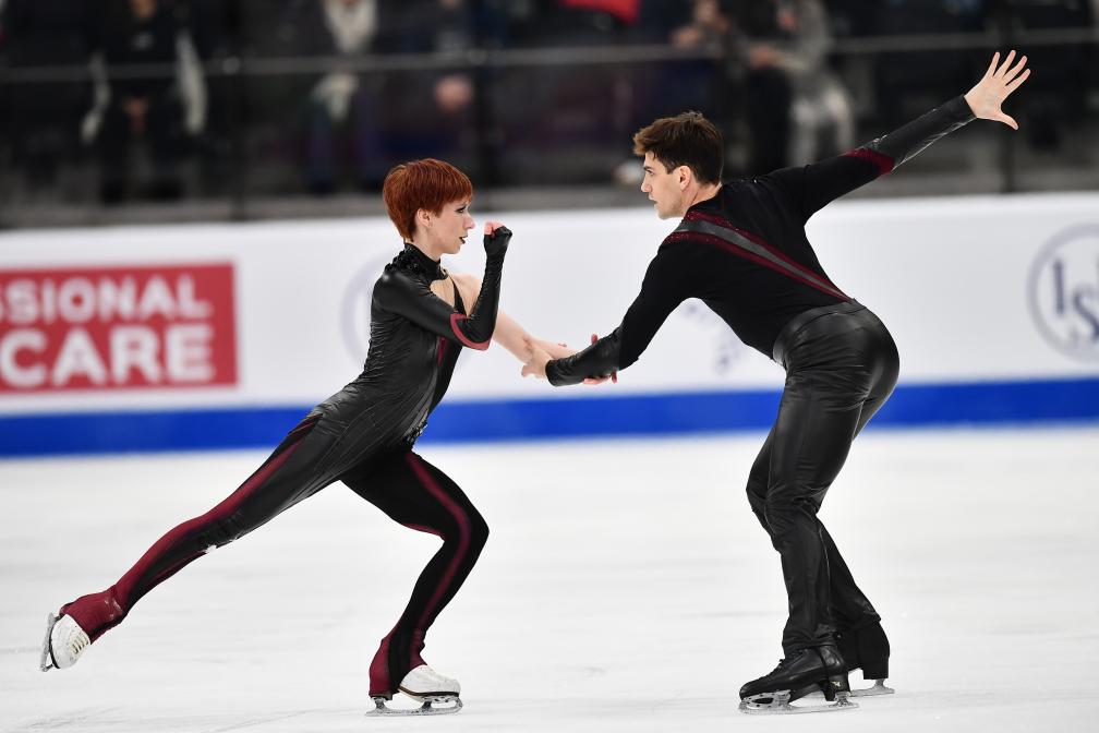 Evgeniia Lopareva (L)/Geoffrey Brissaud of France compete during the Ice Dance Free Dance Competition at ISU European Figure Skating Championships 2025 Tallinn in Tallinn, Estonia on Feb. 1, 2025. (Photo by Sergei Stepanov/Xinhua)