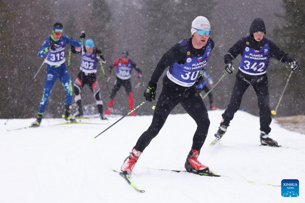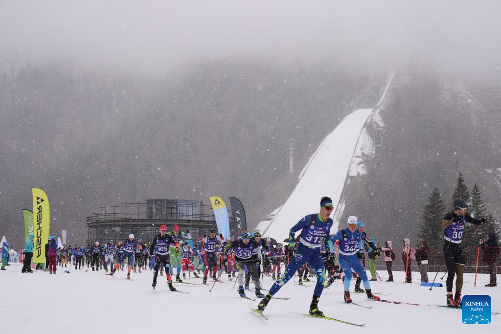 Participants start during the International Planica Ski Marathon in Planica, Slovenia, Feb. 1, 2025. (Photo by Zeljko Stevanic/Xinhua)