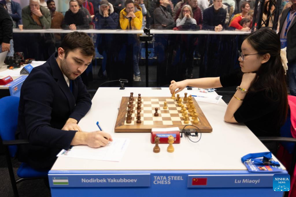 Lu Miaoyi (R) of China competes during the last round of the Tata Steel Chess Tournament 2025 in Wijk aan Zee, the Netherlands, Feb. 2, 2025. (Photo by Sylvia Lederer/Xinhua)