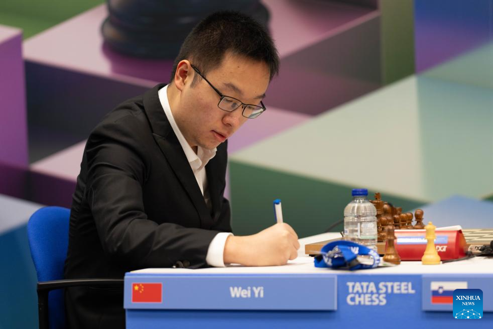 Wei Yi of China is seen during the last round of the Tata Steel Chess Tournament 2025 in Wijk aan Zee, the Netherlands, Feb. 2, 2025. (Photo by Sylvia Lederer/Xinhua)