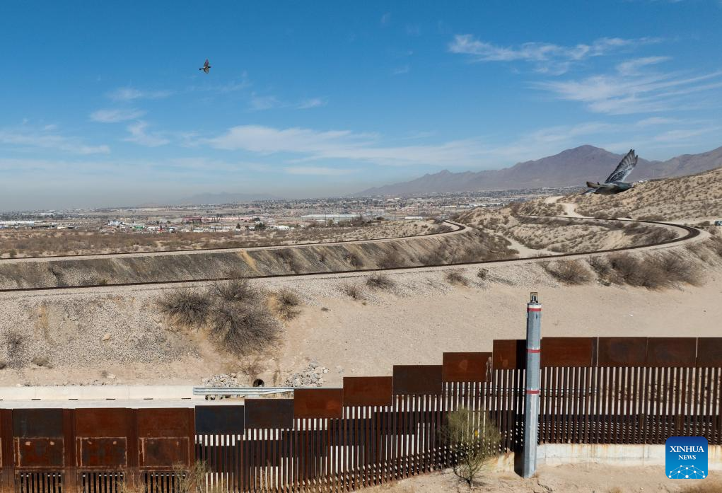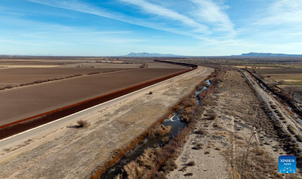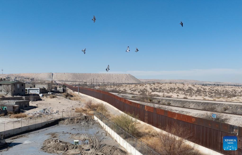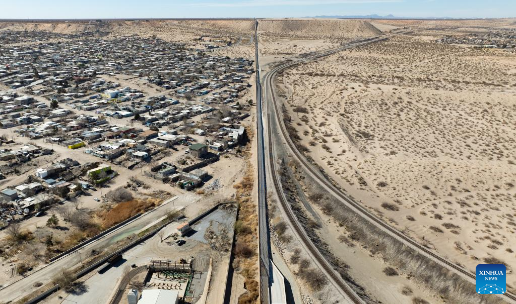 A drone photo taken on Feb. 3, 2025 in Mexico's Ciudad Juarez shows a part of the U.S.-Mexico border wall. Located on the border between Mexico and the United States, Ciudad Juarez is an important city in the Mexican state of Chihuahua, just across the Rio Grande River from El Paso, Texas in the United States.
