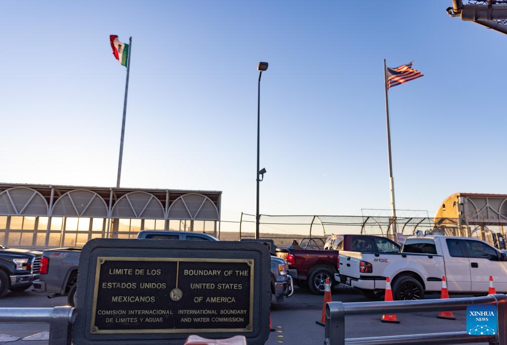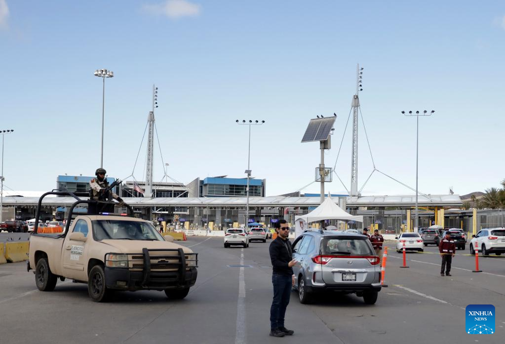 Vehicles wait in line to pass through a border checkpoint in Ciudad Juarez, state of Chihuahua, Mexico, Feb. 2, 2025. Located on the border between Mexico and the United States, Ciudad Juarez is an important city in the Mexican state of Chihuahua, just across the Rio Grande River from El Paso, Texas in the United States.